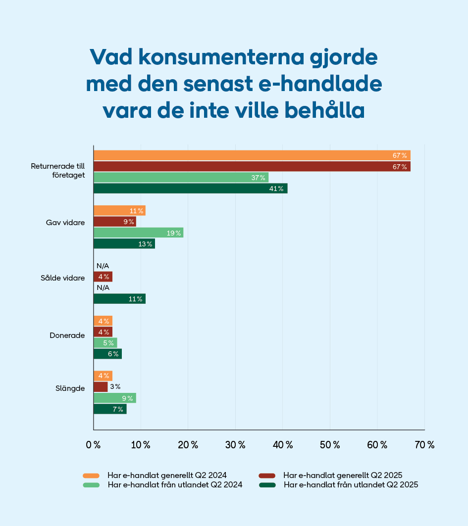 I rapporten jämförs returbeteende beroende på om de inhandlat en produkt från en svensk eller utländsk e-handlare.
