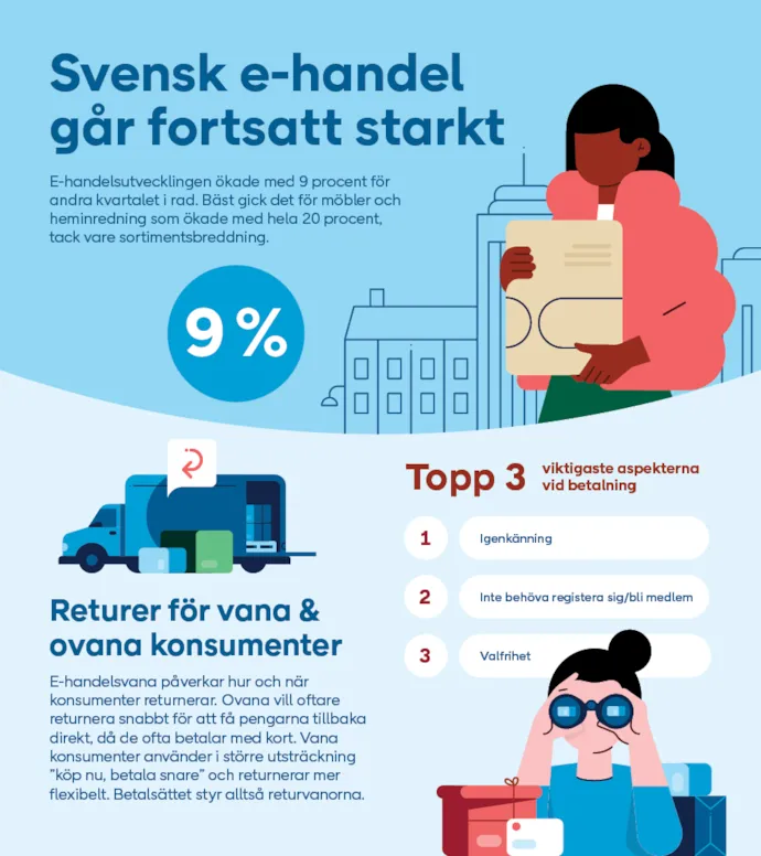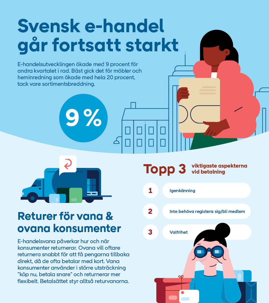 Konsumenters beteende i köpresan är något vi lyfter i årets andra rapport från E-barometern. Köpupplevelsen påverkas av hur konsumenterna navigerar från onlineköp till leverans och retur.